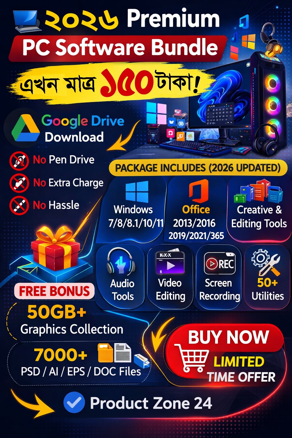 Home Digital Products đŸ’ģ āĻĒāĻŋāϏāĻŋāϰ āϏāĻŦ āĻĒā§āĻ°ā§Ÿā§‹āϜāĻ¨ā§€ā§Ÿ āϏāĻĢāϟāĻ“āϝāĻŧā§āϝāĻžāϰ āĻāĻ•āϏāĻžāĻĨ⧇! | PC Software Combo Pack (āϞāĻžāχāĻĢāϟāĻžāχāĻŽ āĻŽā§‡ā§ŸāĻžāĻĻ⧇)