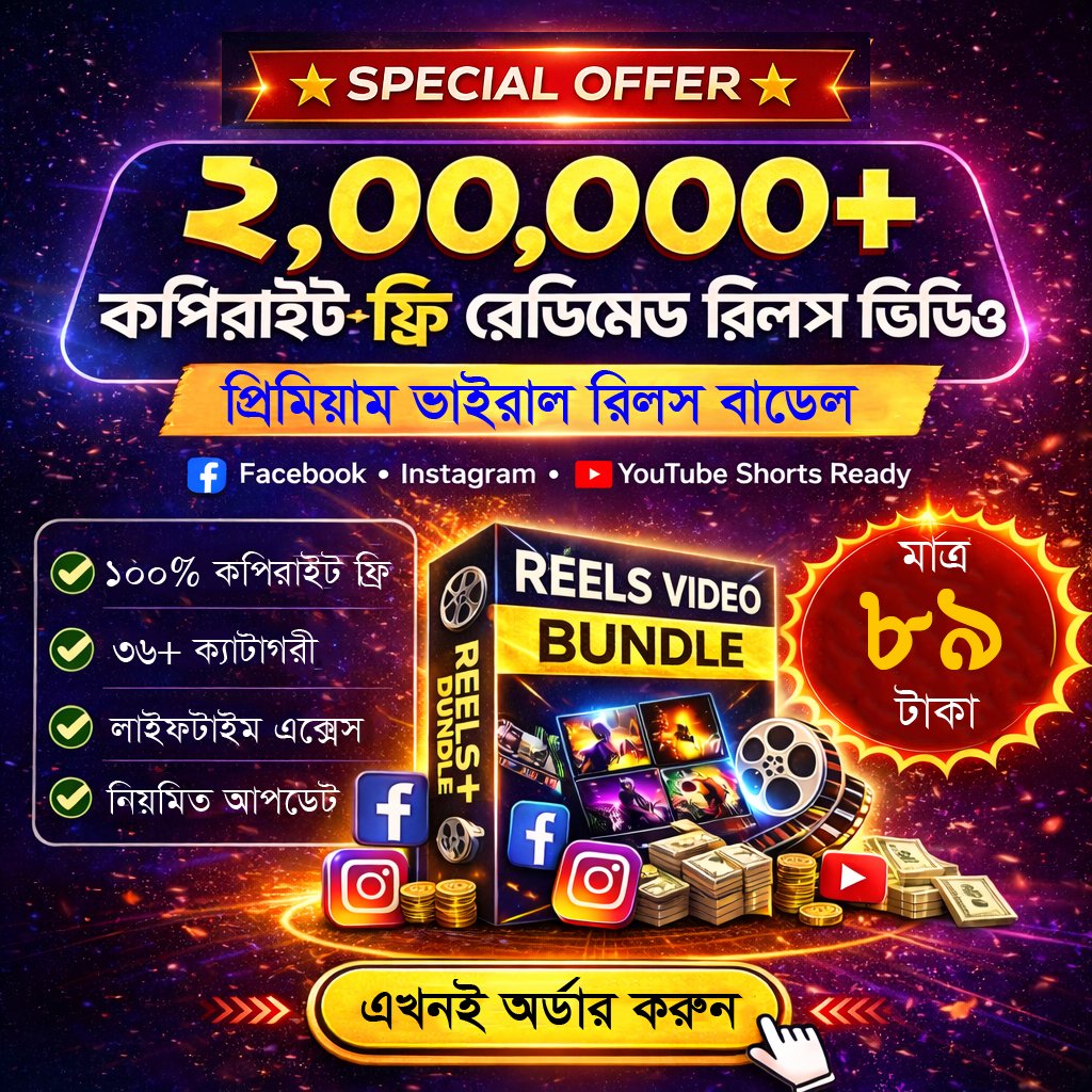 মাত্র ৮৯ টাকায় ২,০০,০০০+ কপিরাইট-ফ্রি রিলস ভিডিও বান্ডেল!